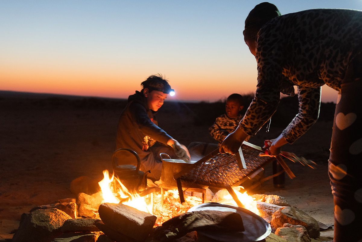 Three meals a day are provided and cooked over the open campfire! Families typically follow a rota of ‘kitchen duty’, taking it in turns to cook for the group using the recipes provided, as well as waking first to make morning teas and coffees for the group. You can expect to enjoy healthy meals with examples such as roast chicken, spaghetti bolognese, lamb tagine and Thai curry, as well as some more local dishes. Most dietary requirements can also be catered for, though we kindly ask you let us know of any upon booking.