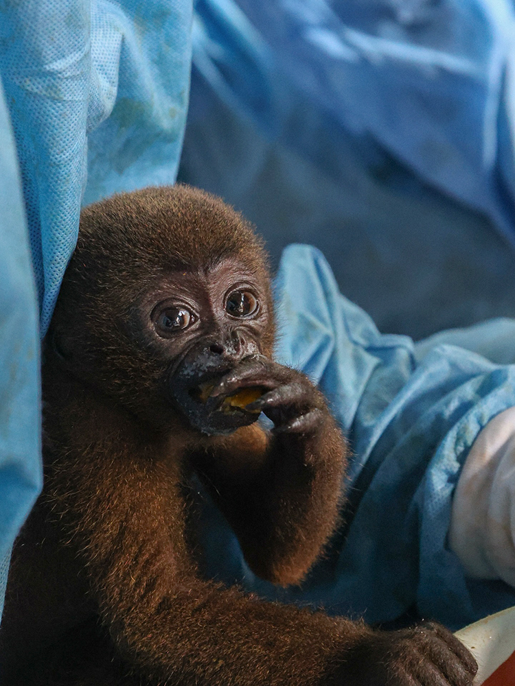 Six baby woolly monkeys were rescued from the illegal pet trade after being found on a boat in the Amazon, injured and without their mothers. Heartbreakingly, one didn’t survive, and others are in treatment for bullet wounds and infections. Despite a rough start, the five remaining babies are now receiving round-the-clock care, and the team is fighting for them every step of the way!